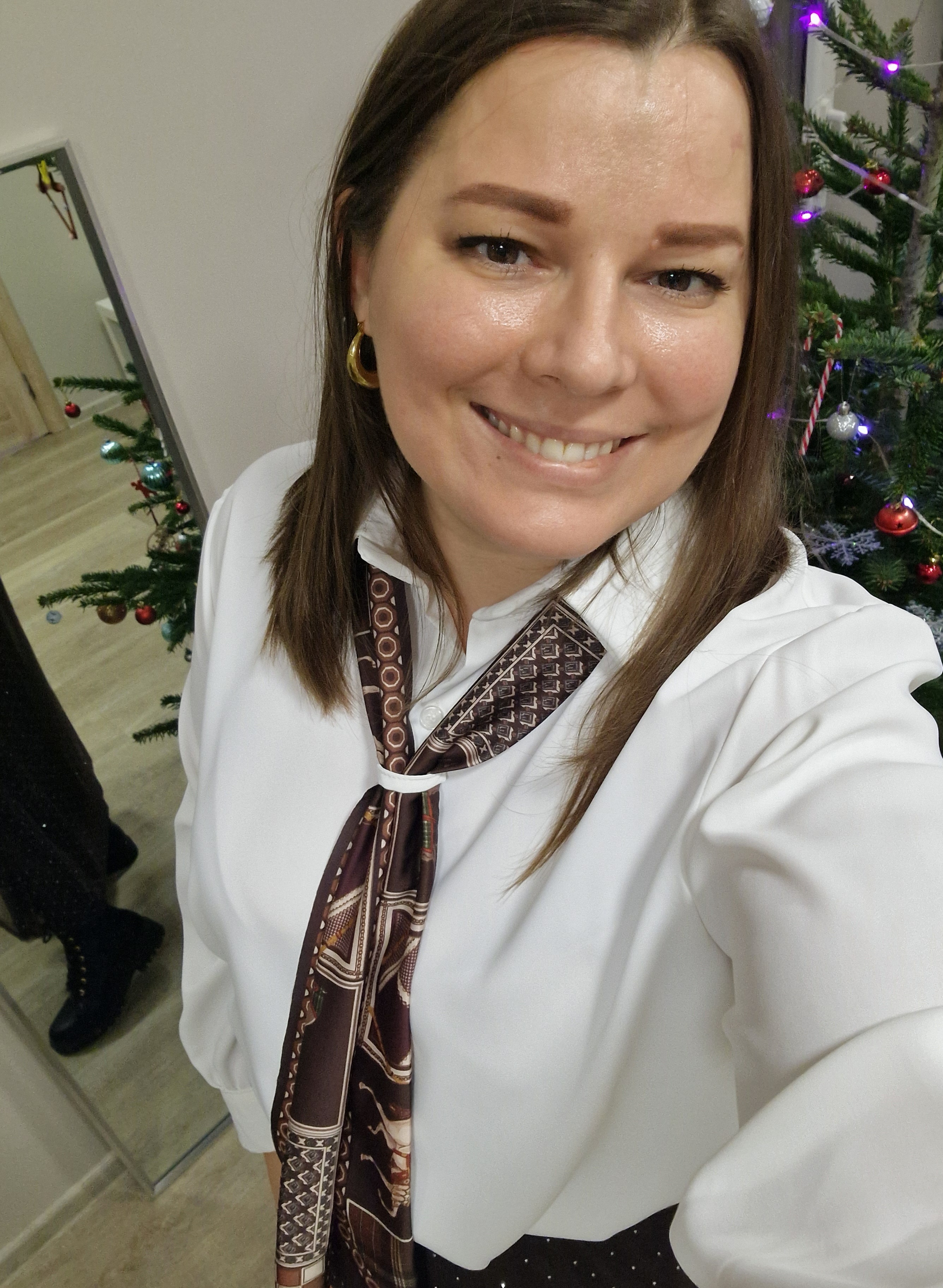 Klasikinis marškinių modelis, kuris yra privaloma modernaus moteriško garderobo dalis. Ir šių marškinukų išskirtinė detalė yra skarelė, kuri suteikia puošnumo, išskirtinumo.