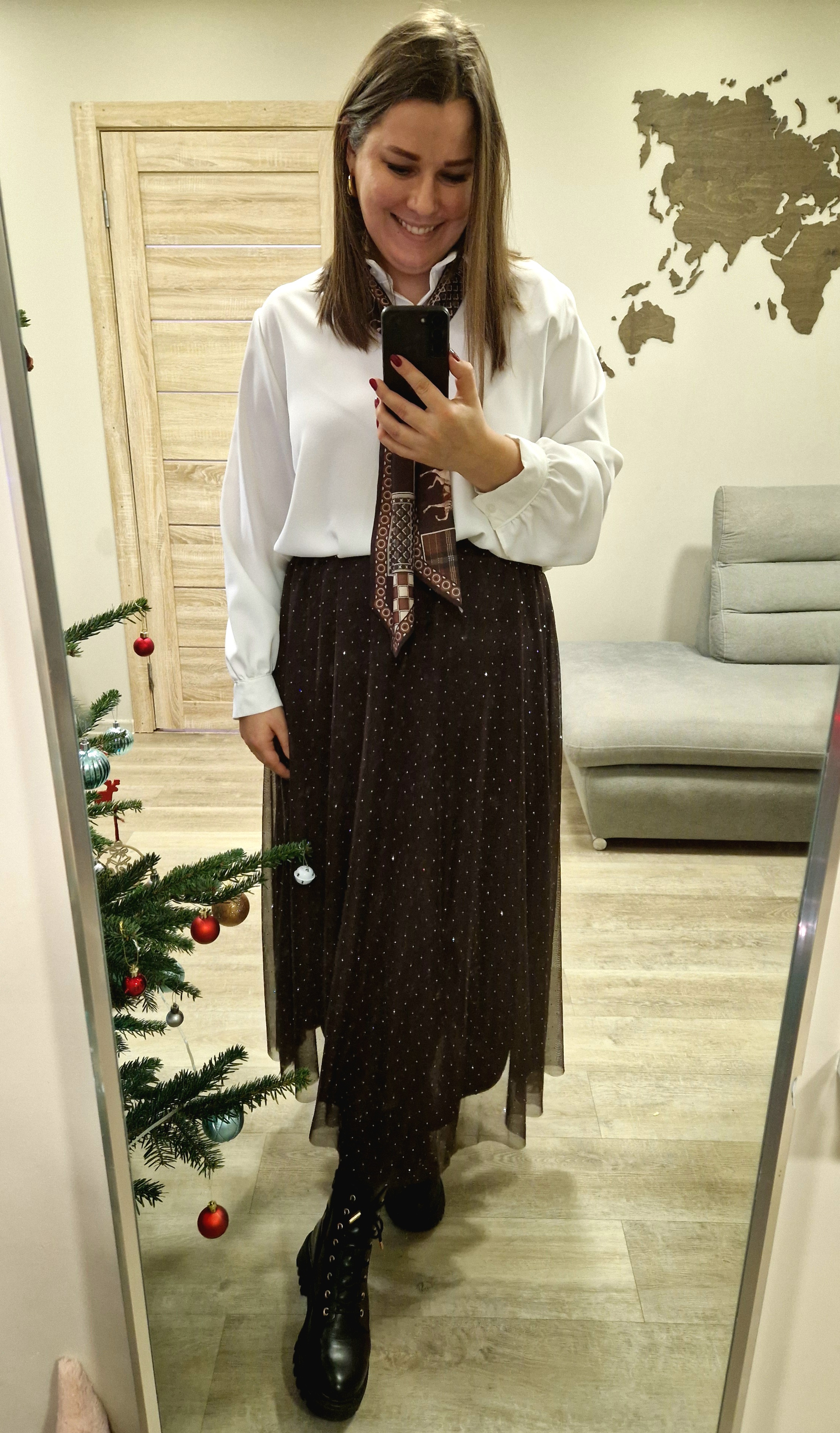 • ​Puošnus Stilius: marškinius derinkite su blizgiu tiulio sijonu, tai bus išskirtinis šventinis įvaizdis.