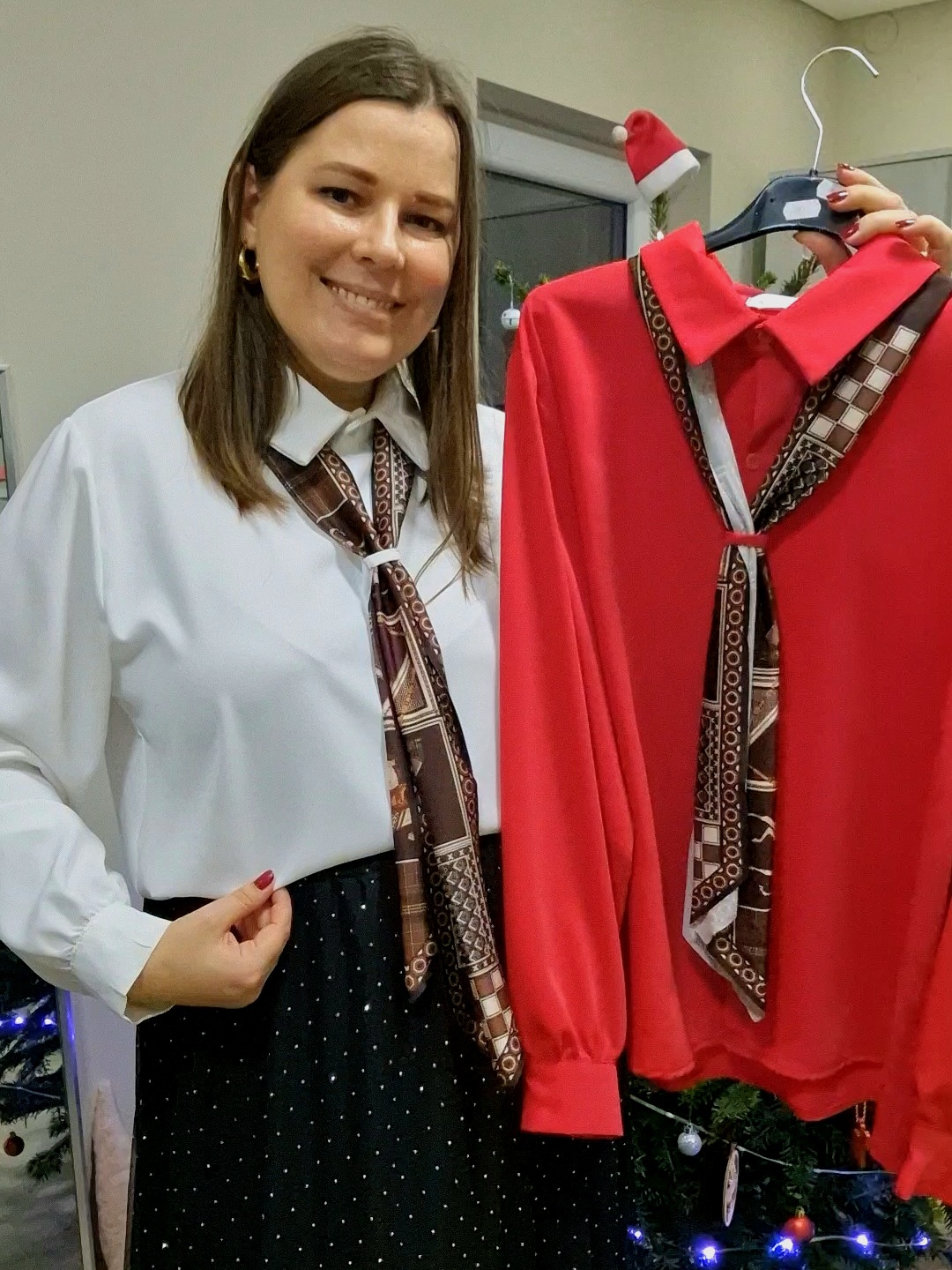 • ​Universalus Nešiojimas: galite juos nešioti keliais būdais: sukištus į kelnes ar sijoną, perrištus, užsirištus mazgu, ar laisvai užmestus ant viršaus.