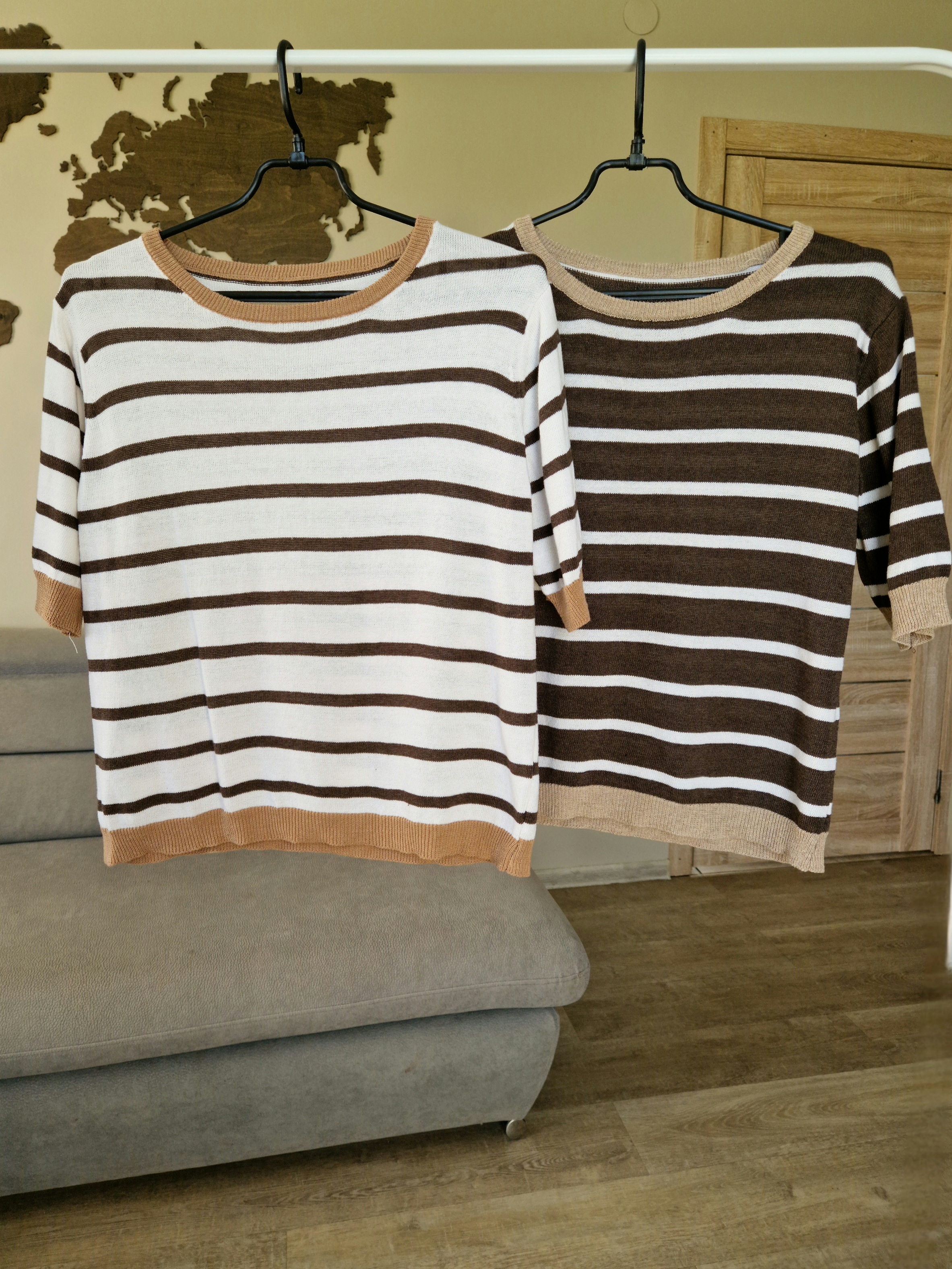 Dryžuotas megztinis trumpomis rankovėmis (2 spalvos)