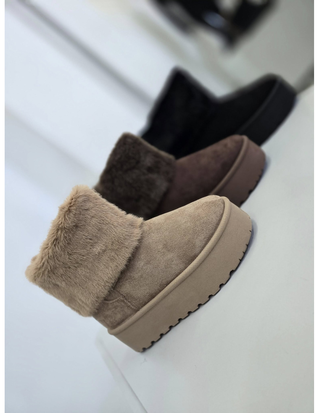 • ​Šilta ir Jauku: Minkštas, dirbtinio kailio apvadas ne tik atrodo žaviai, bet ir patikimai apgaubia koją šiluma, o vidinis pamušalas užtikrina komfortą net ir šalčiausią dieną.