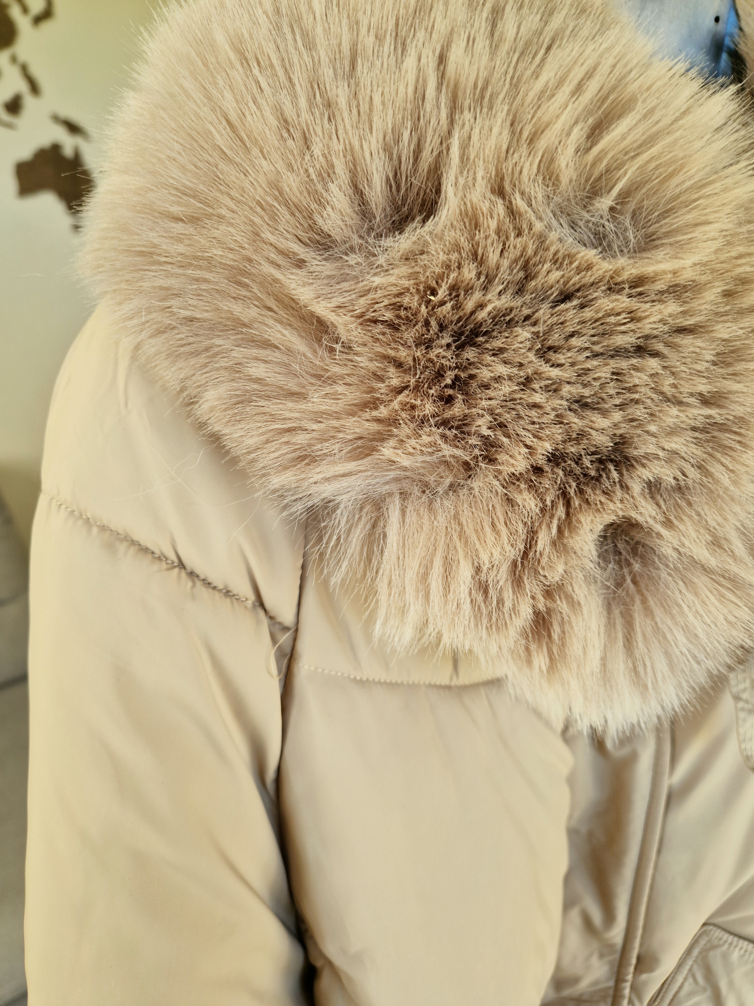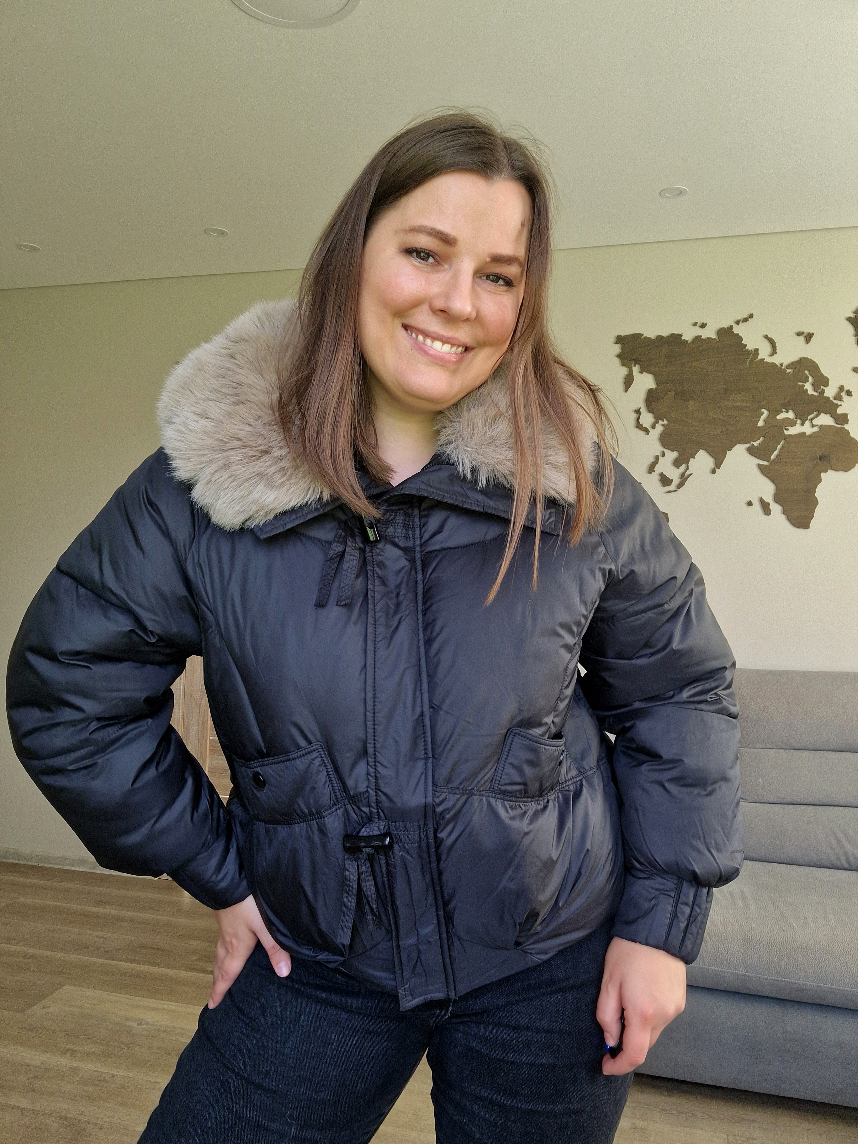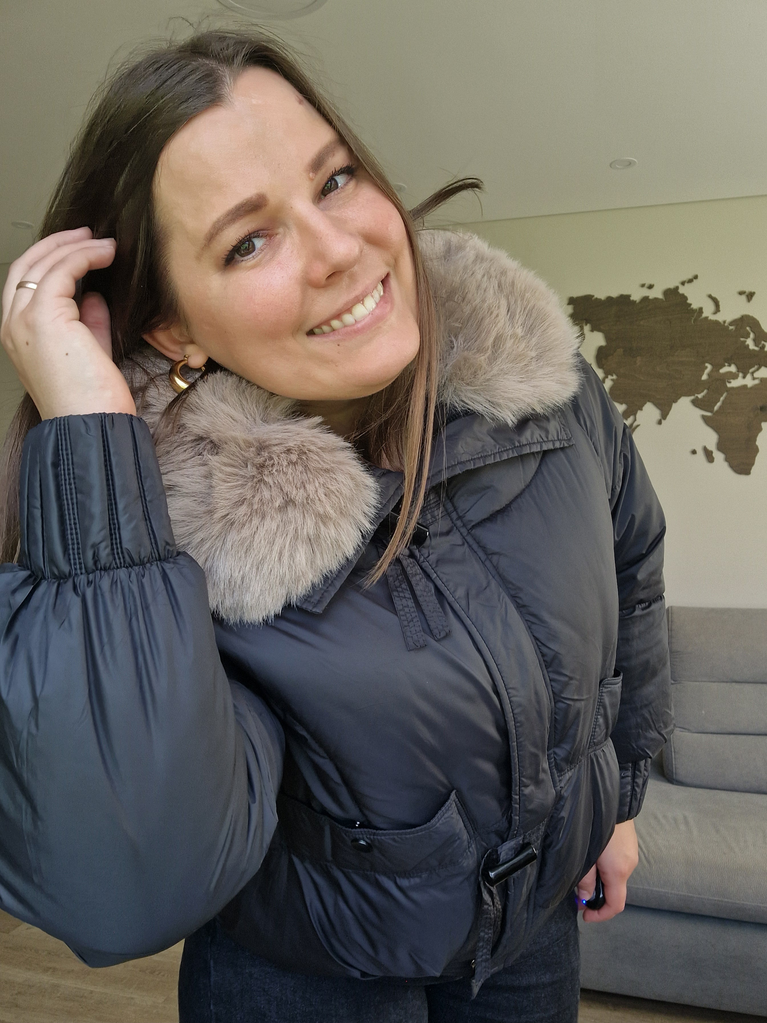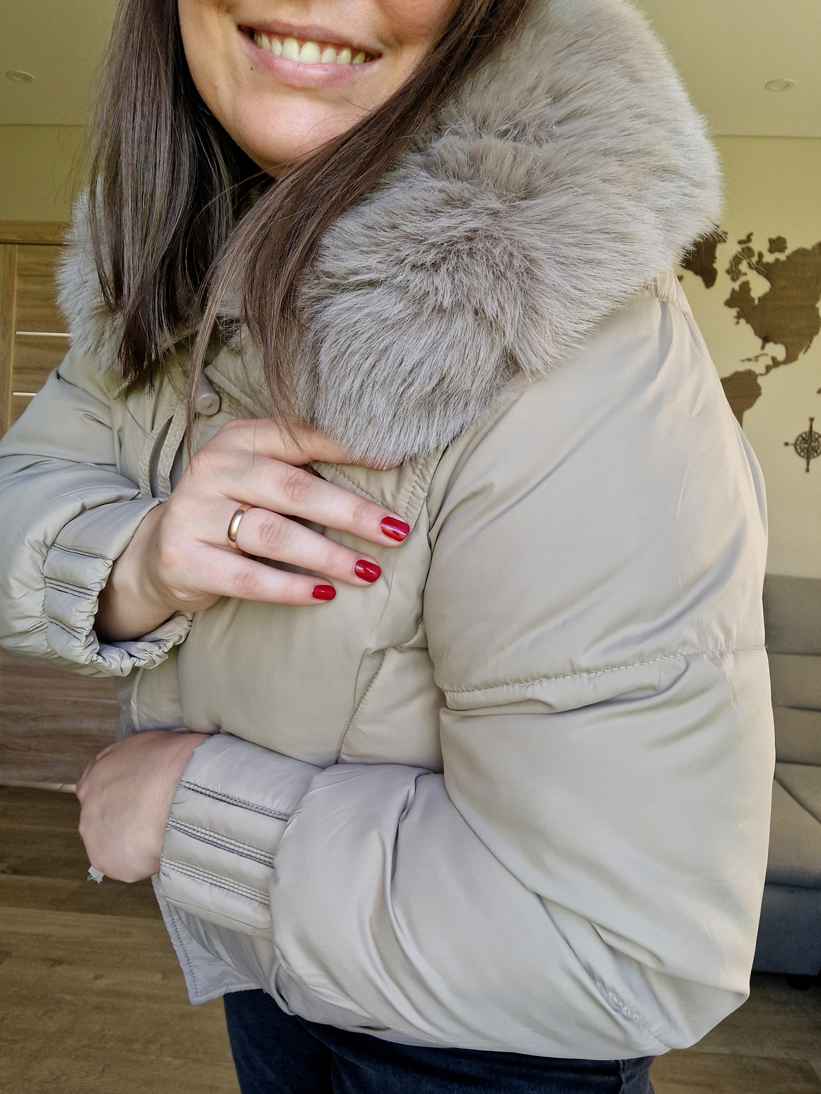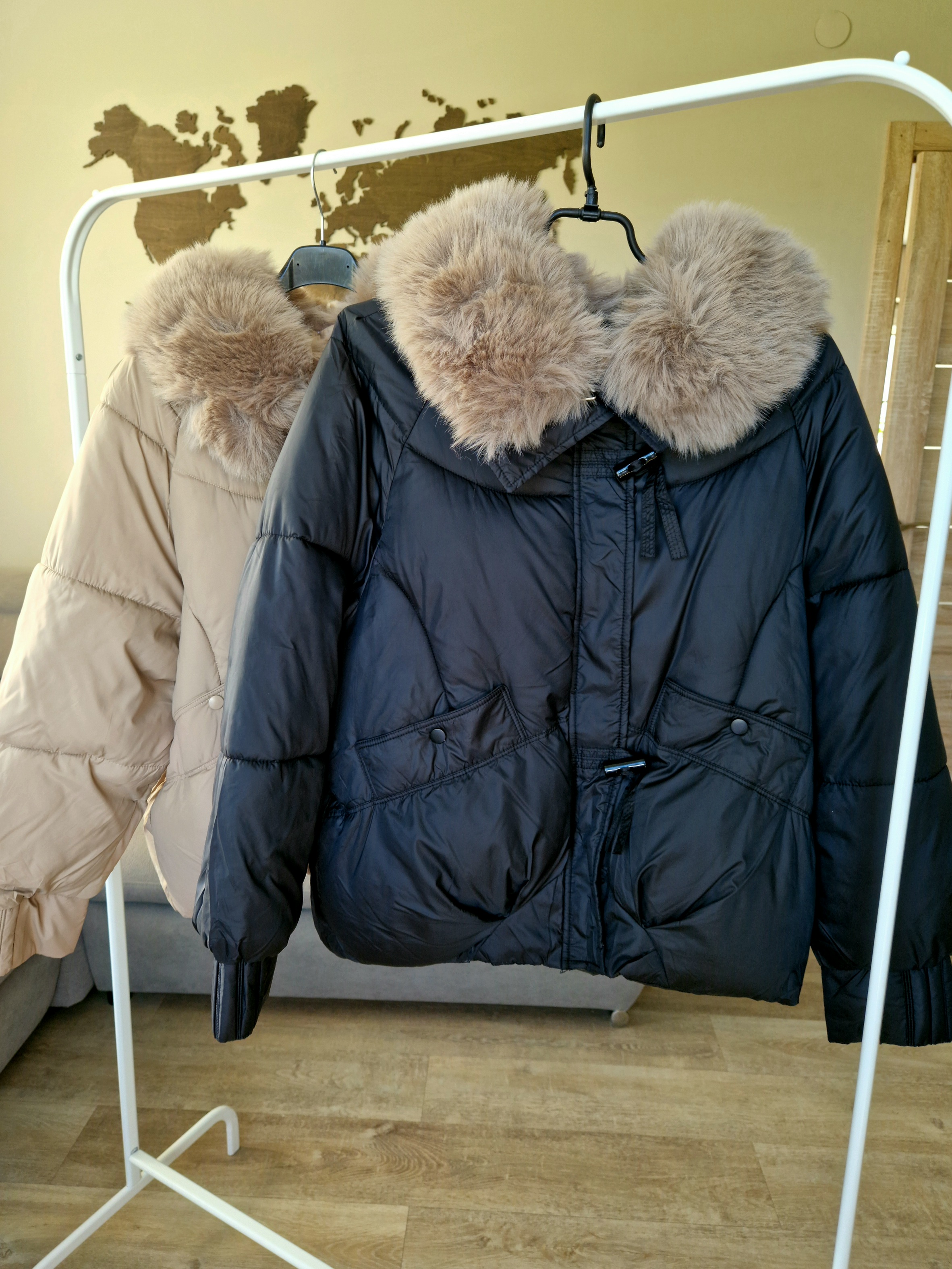 Pasitikite šaltąjį sezoną stilingai ir jaukiai su šia madinga trumpa pūsta striuke. Kreminė ir juoda spalvos lengvai derinasi, o didelė dirbtinio kailio apykaklė suteikia prabangos ir papildomai šildo.
